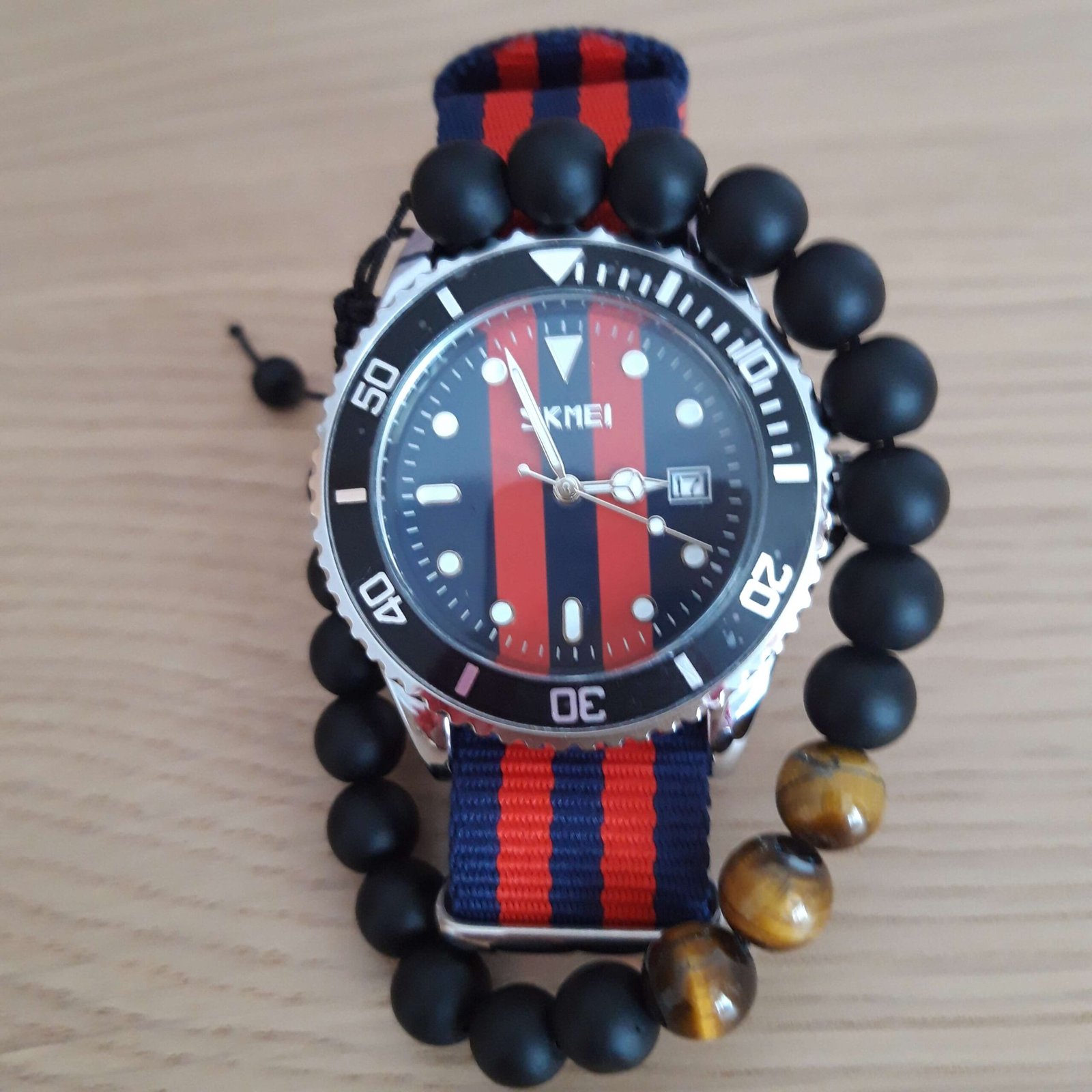 set cadou barbati cu ceas de mana si bratara cu pietre naturale Cadou barbat set cu ceas de ma...